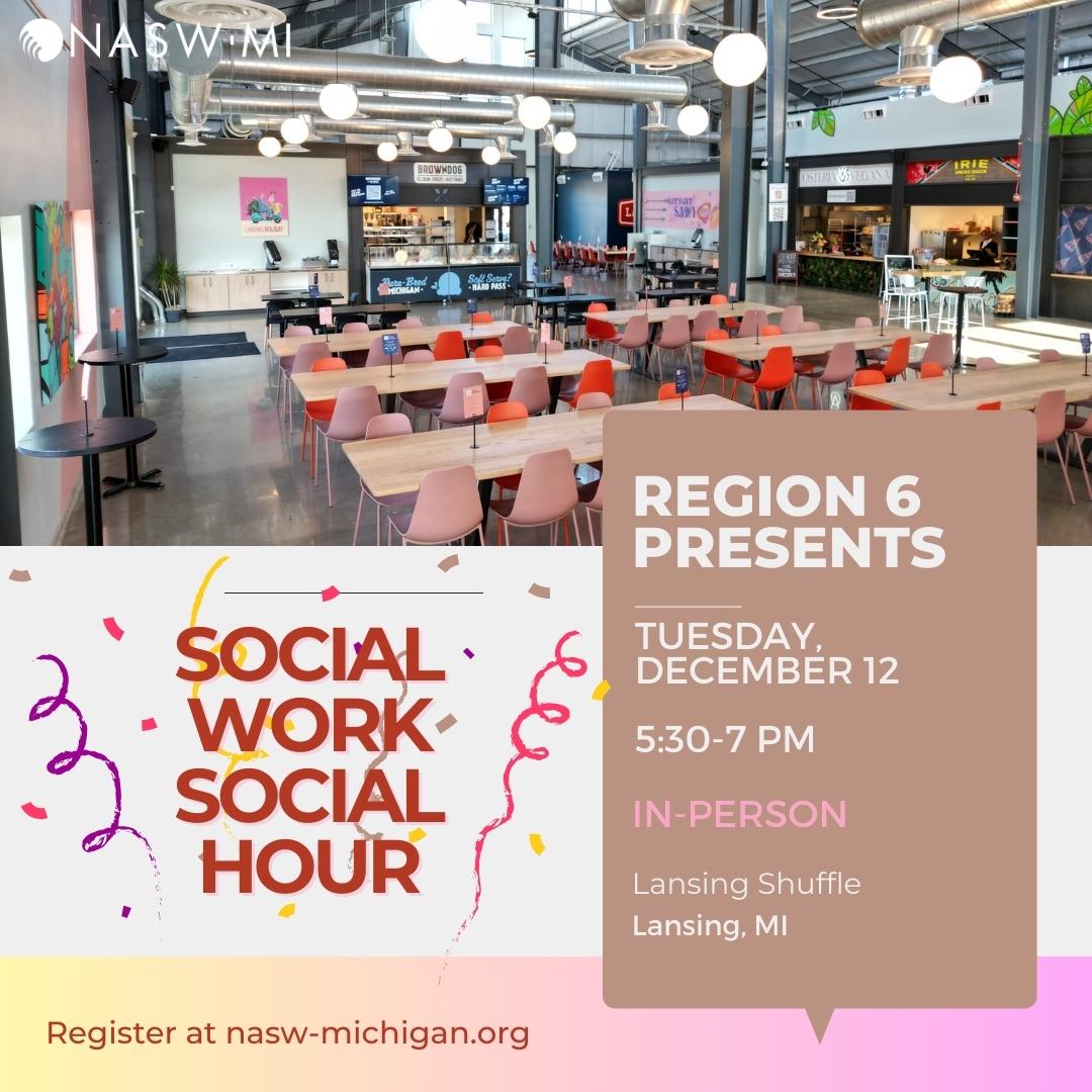 Join NASW Region 6 for a casual meet-up at Lansing Shuffle. Lansing Shuffle has a variety of restaurants and a bar, so drinks and food will be available for you to purchase. Region 6 Rep, Laine Putans, will arrive early to secure a table, but please RSVP so we know how many to expect!